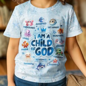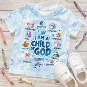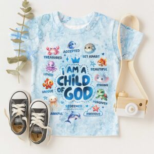 Be the first to review “I Am A Child Of God All Ocean Animals Over Print T-Shirt Kid”